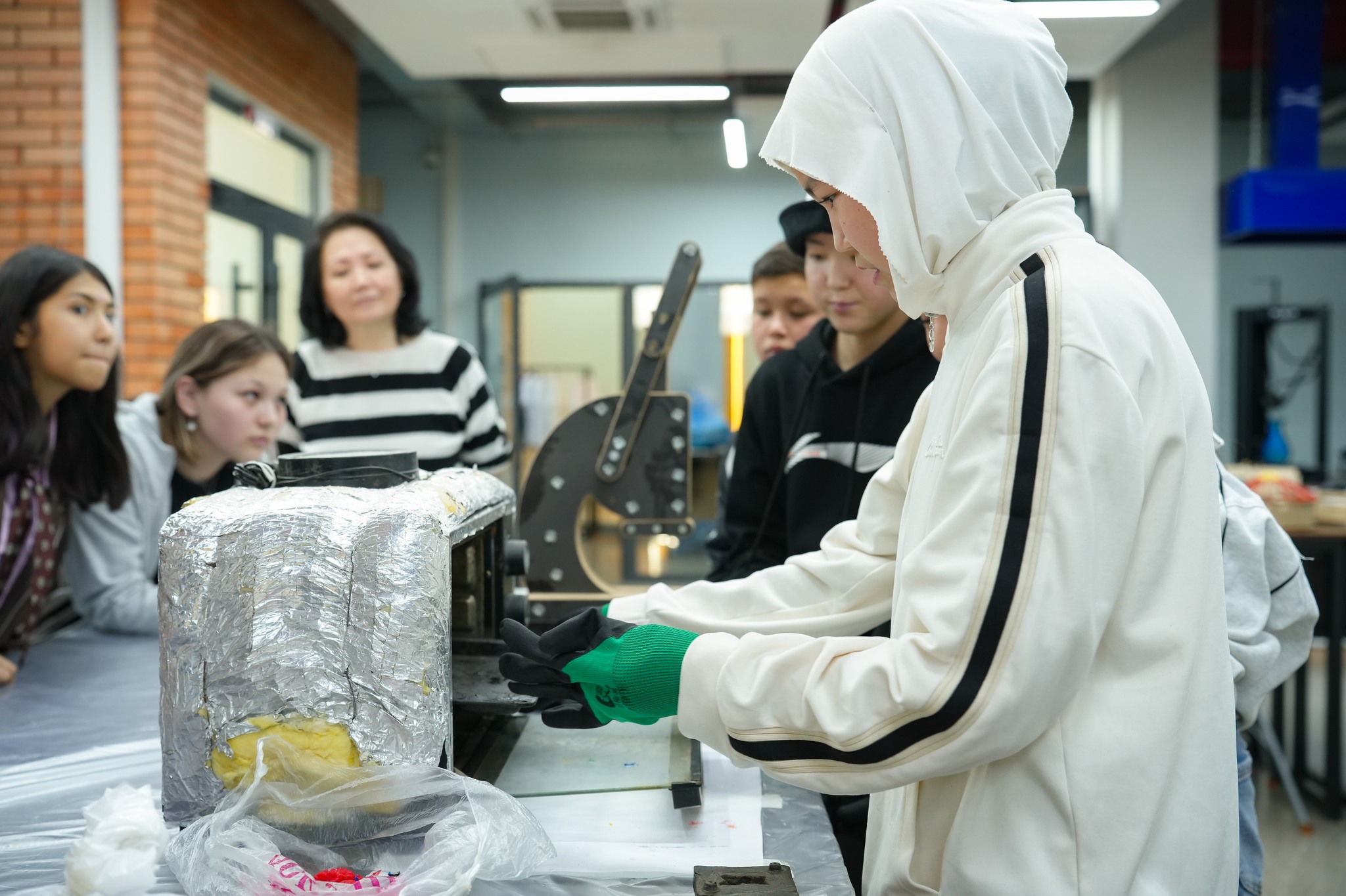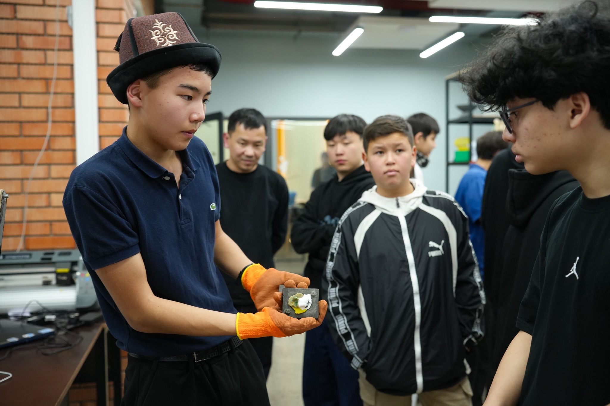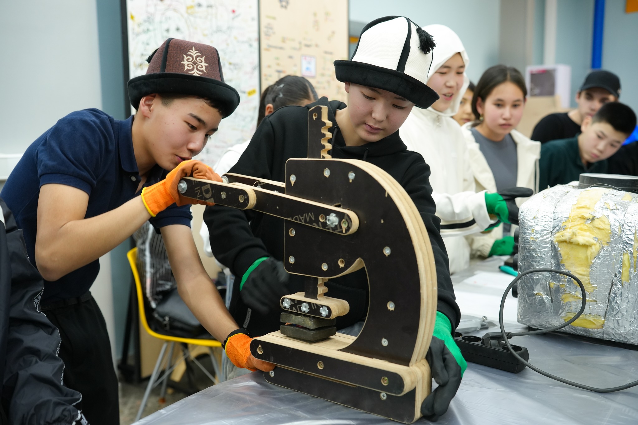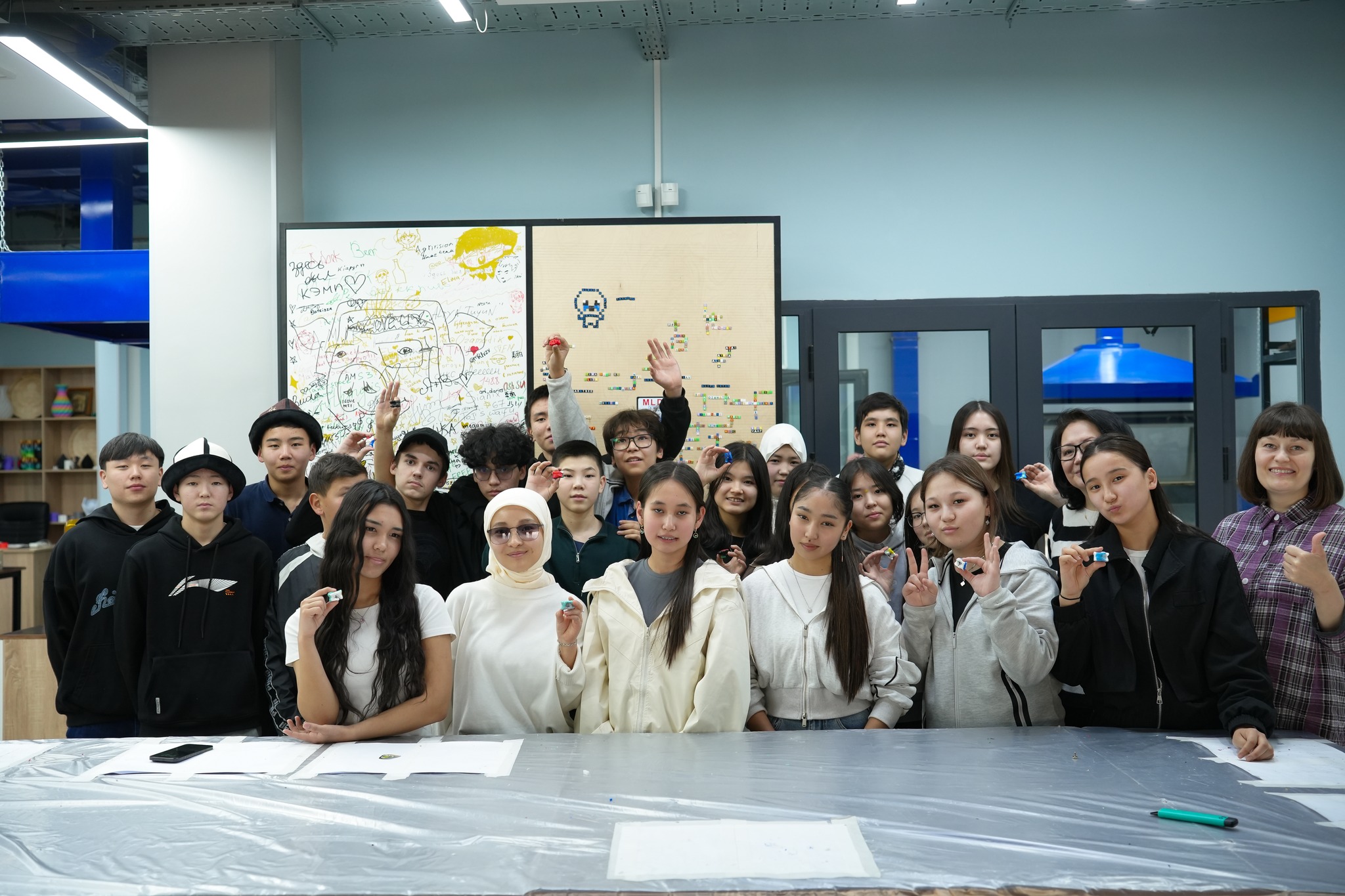 Есть хорошая новость: к проекту добавились новые участники – ученики 10-11 классов Кыргызско-американской школы города Бишкек! Специально для них в феврале в лаборатории мейкерспейса провели обучающий мастер-класс по изготовлению экоальчиков из крышек. Мастер-класс школьникам проводили ученики Таш-Мойнокской средней школы, инициаторы проекта.